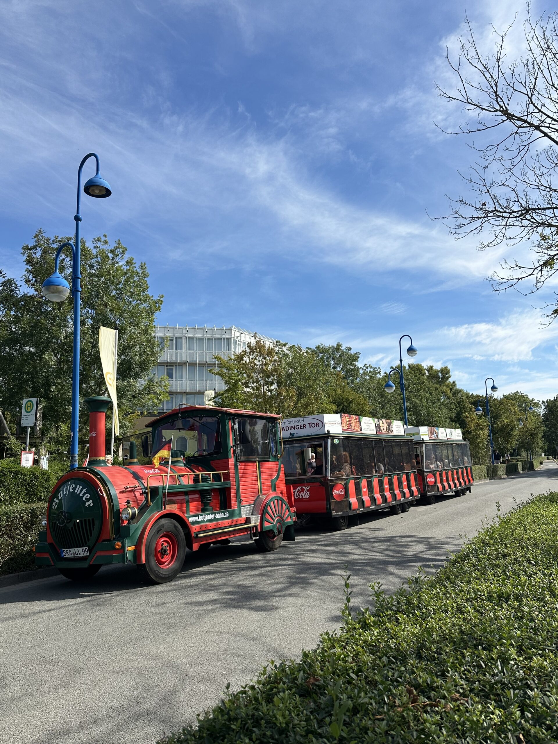 Diese wird auch „Tschu-Tschu-Bahn“ genannt und ist eine Zugmaschine mit zwei Anhängern, optisch gebaut wie eine alte Dampflok mit zwei Waggons. Bereits seit 25 Jahren ist die Bahn im Einsatz. Über die ganze Halbinsel Butjadingen verstreut liegen die Haltestellen. In Tossens beginnt die Fahrt ab der Haltestelle Center Parcs. Die genauen Abfahrtszeiten und Preise erfährst du bei der Tourist-Info.